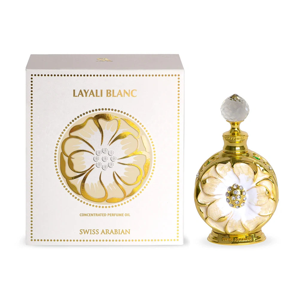 Layali Blanc unfolds with quiet grace—light, balanced, and effortlessly refined. It carries a sense of calm sophistication, where softness and clarity move in perfect harmony.