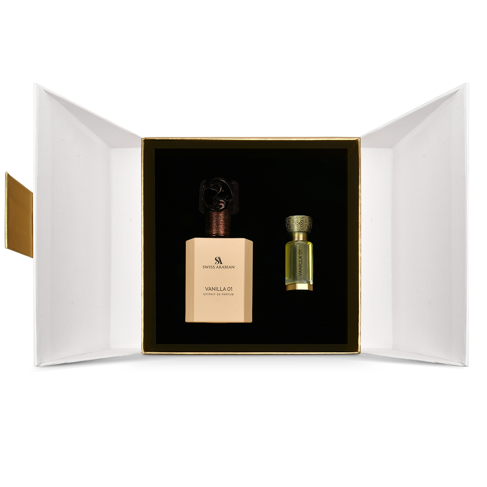 This exclusive pairing brings together Vanilla 01 Extrait de Parfum and its matching perfume oil. The scent opens with pink pepper, orange flower, and creamy coconut, leading into a rich heart of jasmine sambac, tuberose, cappuccino, and caramel. As it settles, vanilla bourbon, tonka bean, sandalwood, and musk create a smooth, lasting trail with comforting depth. Wear individually or layer together to enhance richness, projection, and longevity—creating a bold yet refined signature.